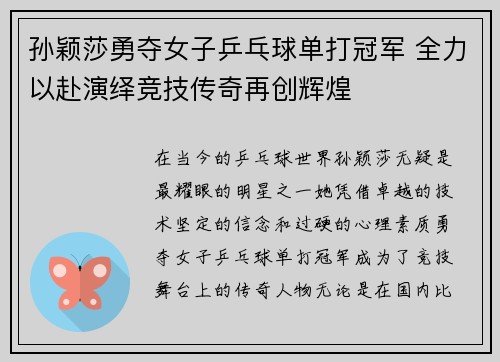 林丹的复出之路,不仅仅是一个运动员身体素质的体现,更是他对自我要求和不断调整的结果。通过高强度的训练、技术细节的精准把控、心理状态的自我调节以及恢复训练的科学方法,林丹不仅保持了强劲的竞技状态,更为年轻一代的运动员树立了榜样。他的复出之路证明了无论年龄多大,只要有足够的坚持与努力,就能够突破身体的极限,继续创造辉煌。